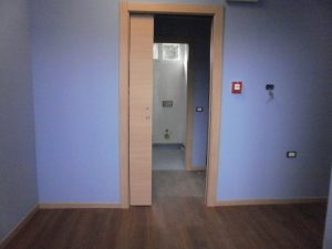 Partendo dal completo svuotamento dell’ambiente tramite rimozioni e demolizioni di ogni sua parte (vetrine, controsoffitti, impianti, partizioni esterne ed interne), il progetto rimaneva condizionato dalla conformazione planimetrica ed architettonica, dalla presenza della struttura portante dell’edificio di cui è parte e dalla distribuzione delle colonne degli impianti condominiali esistenti; questi ultimi hanno costituito il punto di maggiore vincolo progettuale e complessità realizzativa. La nuova struttura necessitava di nove bagni con i relativi carichi, scarichi, accumulo acqua calda sanitaria ecc, il tutto derivato ed allacciato alle tubature esistenti nell’edificio. I lavori realizzati hanno compreso la creazione di tavolati interni per la nuova distribuzione degli spazi (camere da letto per gli ospiti e per il personale operante, ufficio, zona soggiorno, cucina, servizi); la modifica delle facciate per la creazione di finestre in sostituzione delle vetrine esistenti verso strada e delle partizioni in vetro cemento verso cortile; la dotazione degli impianti di riscaldamento, condizionamento, idrico-sanitario, elettrico, telefonico, citofonico ed allarme.
